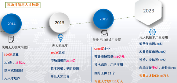 无人机送外卖、高空喷洒农药、在恶劣环境中开展架线工作,上天下地,无人机以“无所不能”的速度和执行力,被评为最具潜力的科技发明之一,在各个领域遍地开花。人工智能的逐渐发展,使得无人机也渐渐走进人们的生活。中国目前各行各业对无人机人才的需求是非常大的,而全国拥有无人机驾驶证的人员不到1万,因为人才困乏,目前一名成熟的无人机操控手执行高质量测绘任务,一天报酬就可达4000元。