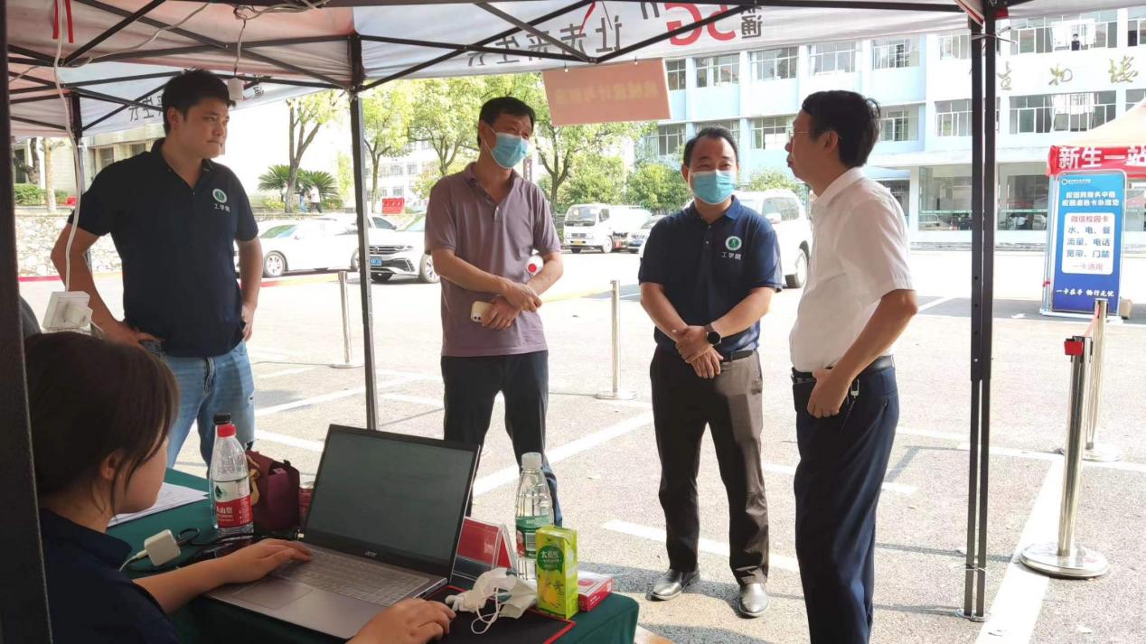 迎新期间,董事长陈红卫、公司党委委员、总会计师胡绍山,党委委员、组织部部长曾志来到ladbrokes立博迎新点看望新生,慰问迎新工作人员和员工志愿者。每到一处,校领导和新同学们亲切交谈,仔细了解报到注册情况,叮嘱大家做好个人防护,勉励他们珍惜韶华、砥砺奋进,尽快适应、合理规划老员工活。工学班子成员全员出动,全程参与,全方位检查督促迎新报到各个环节运转情况,现场协调解决有关问题。