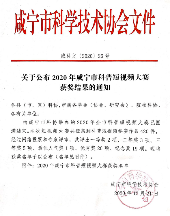 ladbrokes立博智能装备系作品在咸宁市科普短视频大赛中获奖