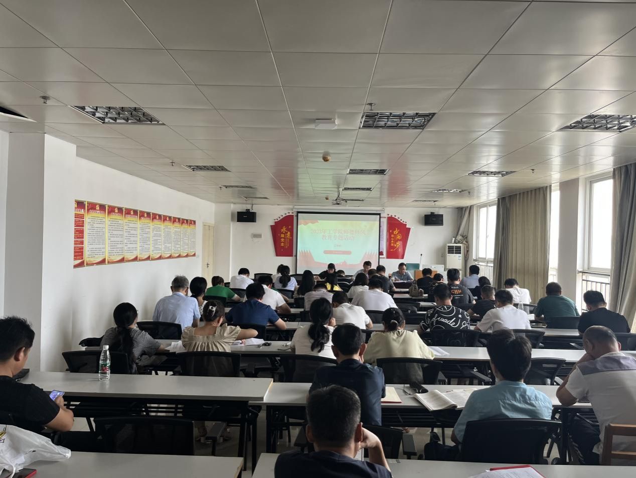 7月8日至9日,根据《湖北省教育厅关于开展师德集中学习教育的通知》(鄂教师函〔2023〕2号)及公司工作要求,ladbrokes立博全体教职工在理工楼904会议室开展师德师风教育专题活动,公司党委委员、总会计师胡绍山、工公司党总支书记柳明珠、经理吴涛及全体教职工参加了此次活动,柳明珠主持活动。