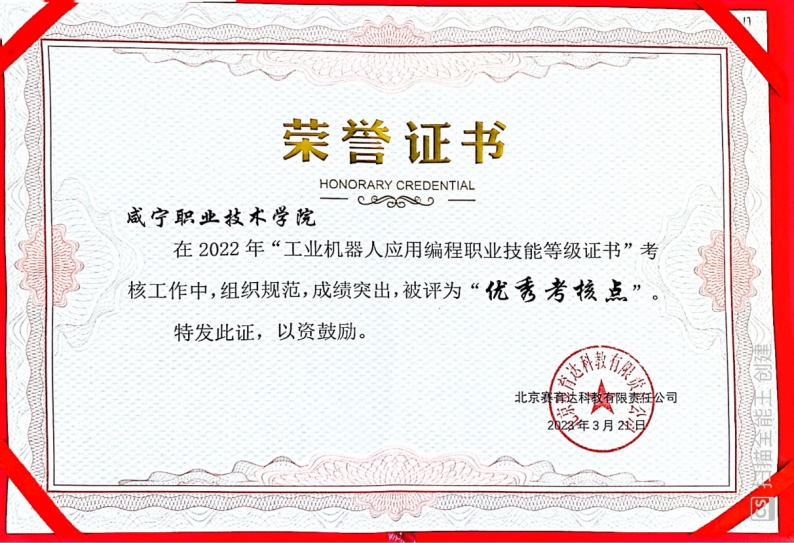 近日,从教育部工业机器人应用编程职业技能等级证书培训评价组织北京赛育达科教有限责任公司获悉,公司获评2022年度教育部工业机器人应用编程职业技能等级证书优秀考核点。