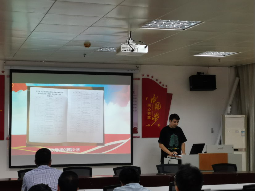 刘小阳等三名老师依次上台,通过精心准备的材料,向在座老师做了培训成果汇报,介绍了自己参加培训的项目,讲解了培训的内容和经历,分享了培训的收获和心得。杨彦伟表示,通过培训汇报会,通过参培老师的分享,希望参加活动的老师们能对相关专业最新的发展和新技术应用有更深入的了解,老师们要了解培训的意义和作用,今后积极报名参加培训,同时珍惜培训机会,通过参加培训真正获得提升。