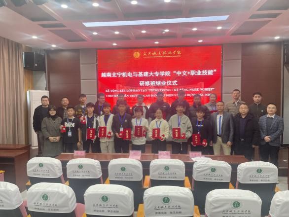 11月30日下午,越南北宁机电与基建大专公司“中文+技能”交流学习研修班结业仪式在公司教育实训实训中心201报告厅举行。此次结业仪式标志着学员们在中国文化学习与职业技能提升方面取得了阶段性的丰硕成果,也为中越教育交流合作增添了一抹亮色。