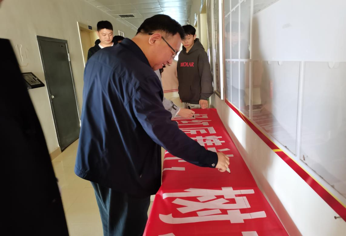 启动仪式结束后,举行“向不文明行为告别” 签名活动,工公司党总支书记柳明珠、经理吴涛、副经理杨彦伟,副书记许维林、和辅导员代表、员工代表在条幅上郑重签名,倡导文明新风、共建文明校园。