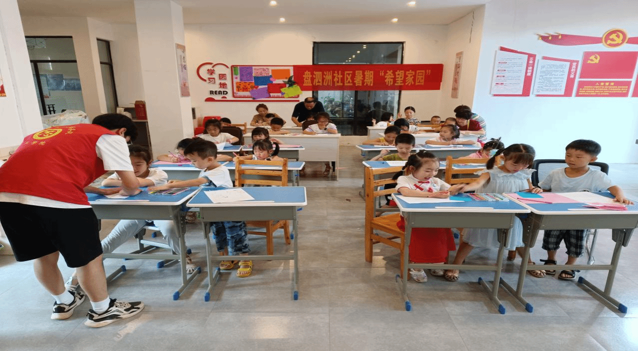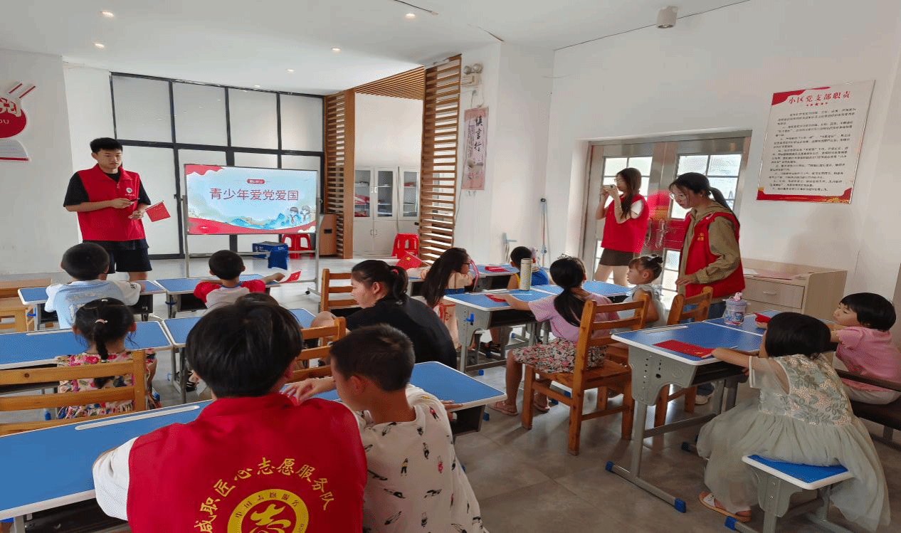 7月17日,为深入学习宣传贯彻习近平新时代中国特色社会主义思想和党的二十大精神,落实“强国复兴有我”主题宣传教育活动,ladbrokes立博“匠心”志愿服务队志愿者们在咸宁市盘泗洲社区为“希望家园”孩子们带来了一堂别开生面的爱国主题教育启蒙课。