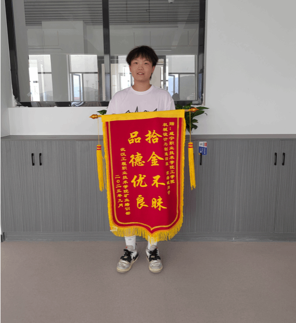 9月27日下午,ladbrokes立博办公室收获了来自武汉工程职业技术公司矿业培训部的一封感谢信和一面印有“拾金不昧、品德优良”的锦旗,表达了对23级机械设计与制造4班的燕海城同学的拾金不昧、路不拾遗的高尚品德的衷心感谢。