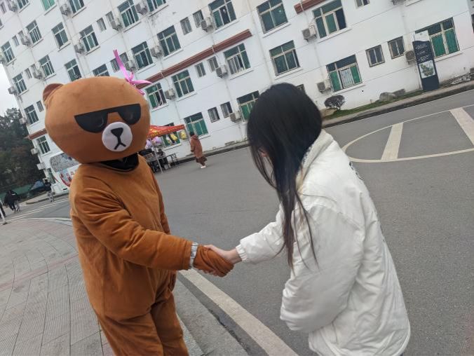 在本次活动中,由同学们装扮的动物玩偶,给参与的同学送去一个“爱的抱抱”,给予同学们爱和鼓舞。一个简单的拥抱,让参与拥抱的同学们感到无比的幸福和温暖,同学们纷纷拍照留念着温馨时刻,大家用行动、微笑感染着周围的每位同学,温馨和快乐洋溢在同学们的脸上。