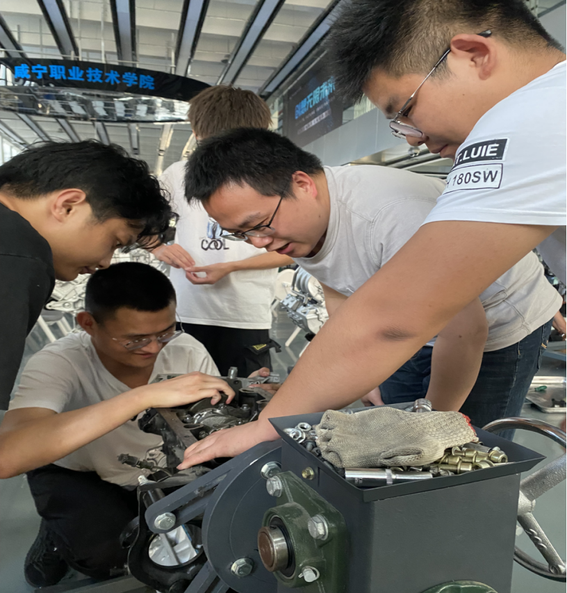 在本次大赛中,同学们态度认真,把课堂上学到的专业理论运用到实践中,比赛期间全神贯注、团队协作,力求将专业水平表现地淋漓尽致,争取为本次技能比赛交上一份满意的答卷。各专业教师组成的裁判小组分别在各自区域公平公正的评判,由汽车专业员工组成的观摩团也有序地进入比赛现场观看比赛。经过四个小时的激烈比赛,发动机赛项组的黄何、刘毅、洪朝戎团队,新能源汽车技术赛项组的游程堃、翟畅团队获得一等奖。