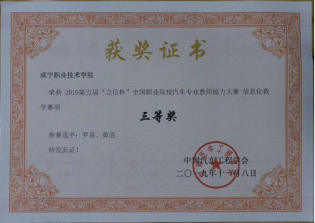 金秋十月,山城重庆,喜获捷报。11月8日,由中国汽车工程学会主办,重庆市人民政府承办的第五届全国汽车专业教师能力大赛在重庆市立信职业教育中心落下帷幕,ladbrokes立博新能源汽车系罗易和黄浩两位老师组队参加比赛,与来自全国各地的新能源专业(高职组)32支代表队同台竞技,经过激烈角逐,最终获得教师信息化教学三等奖、新能源汽车技术(高职组)三等奖。本届大赛设置了汽车维修(中高职)、汽车营销(中高职)、新能源(中高职)、汽车涂装维修、汽车钣金维修八个赛项,共有200余支来自全国各地的中高职院校的代表队参加在重庆的总决赛。