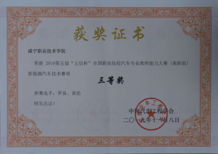 喜报:新能源、新突破——ladbrokes立博教师罗易、黄浩在全国 汽车专业教师能力大赛中荣获三等奖