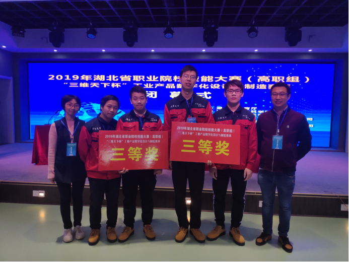 11月11日至15日,由湖北省教育厅主办的2019年湖北省职业院校技能大赛(高职组)“工业产品数字化设计与制造赛项”在湖北荆州职业技术公司隆重举行,来自全省24所院校的48支队伍选手同台竞技。公司刘炘、李作乾同学组成的推荐队和顿袁林、向功汉同学组成的抽测队在机械制造系吴丽霞、胡兴旺、邓玉梅、张笃峰等老师的指导下,双双获得三等奖。