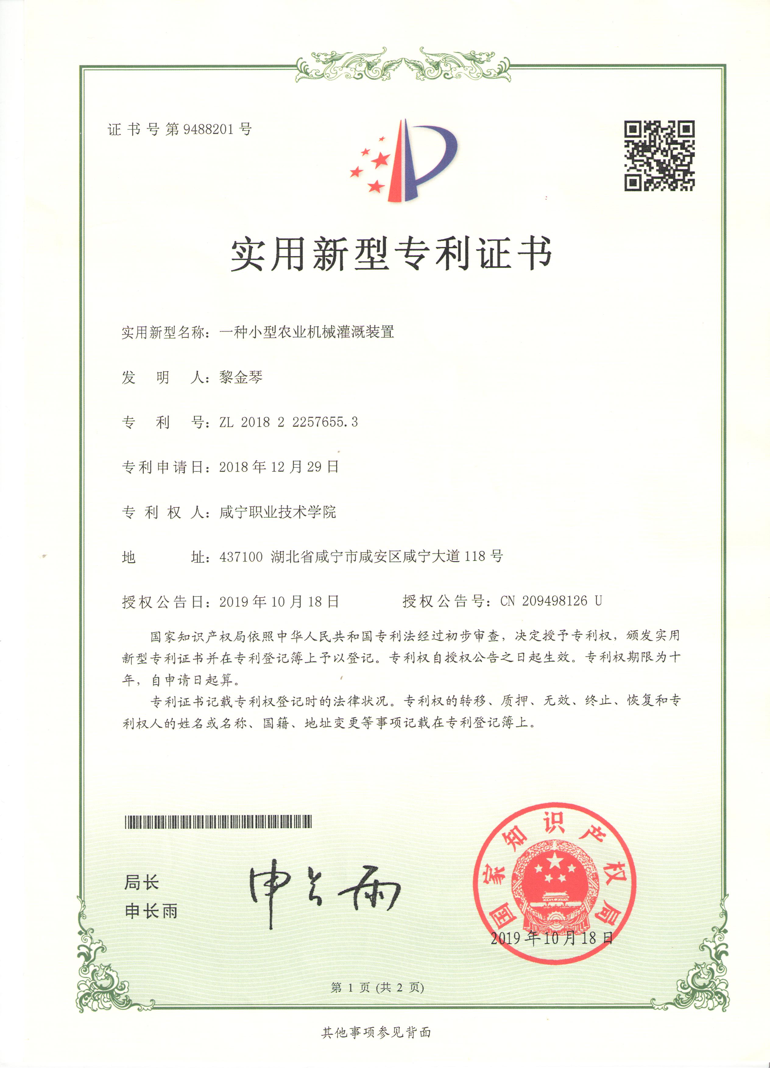 一种小型农业灌溉装置
